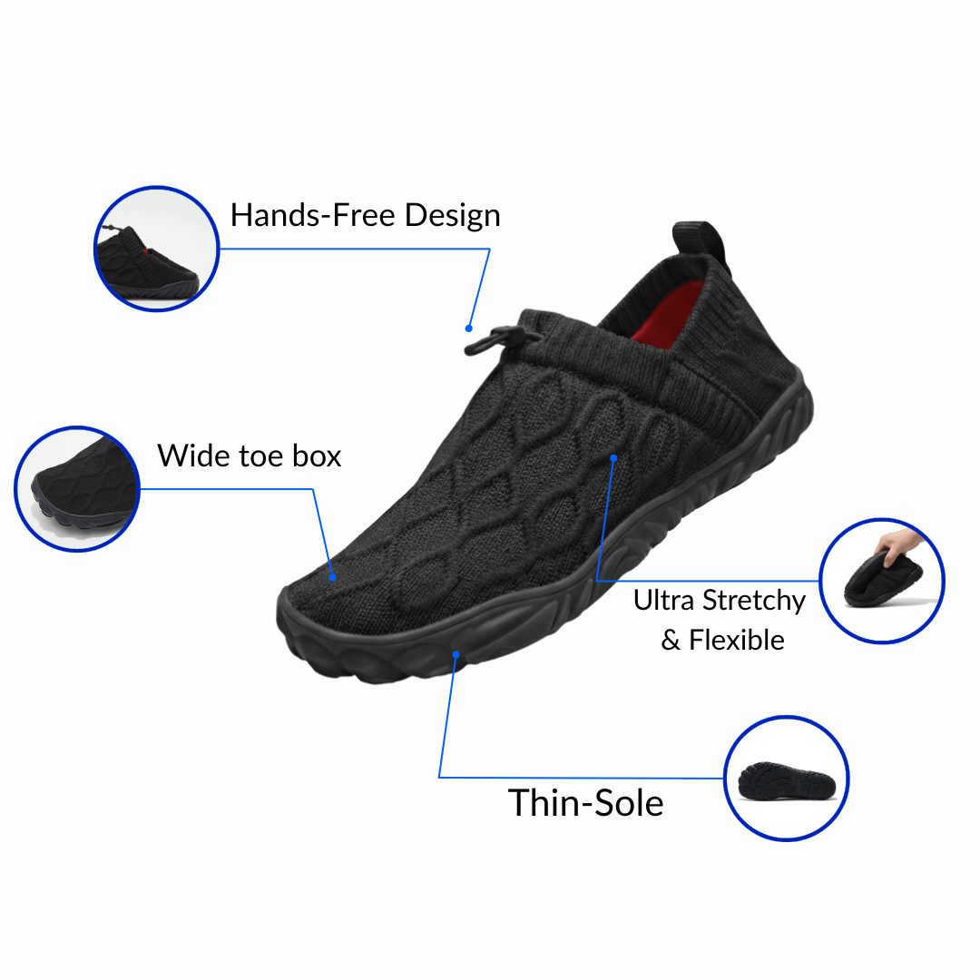 - Zero-drop soles — Keeps weight spread evenly across your whole foot so pressure doesn't build up in painful spots