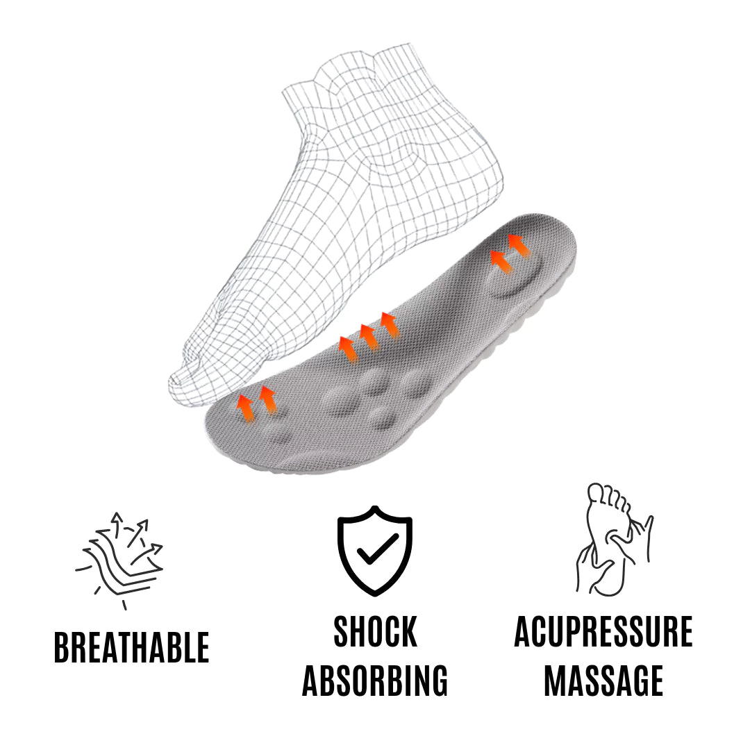 Experience therapeutic relief with precision-placed massage points that target key pressure zones in your feet. These massage nodes help stimulate circulation and provide continuous comfort.